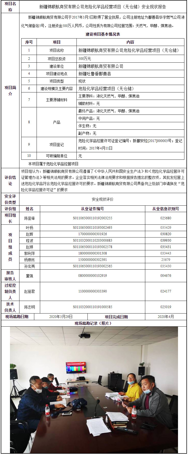 新疆锦顺航商贸有限公司危险化学品经营项目(无仓储)安全现状报告