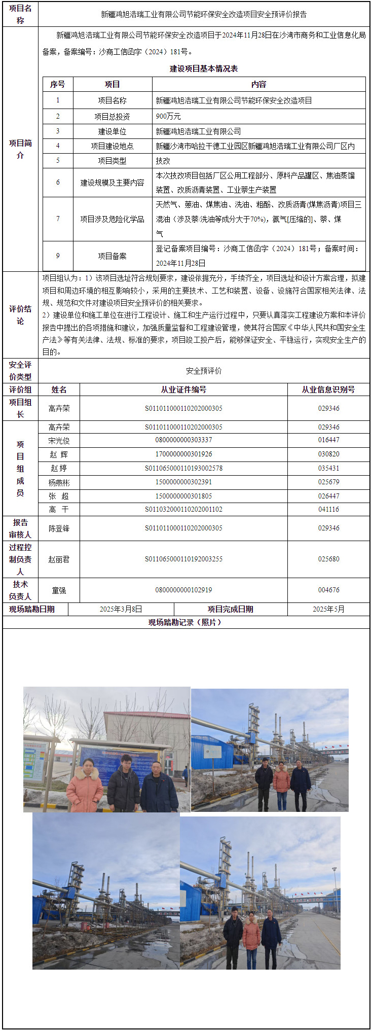 新疆鸿旭浩瑞工业有限公司节能环保安全改造项目安全预评价报告