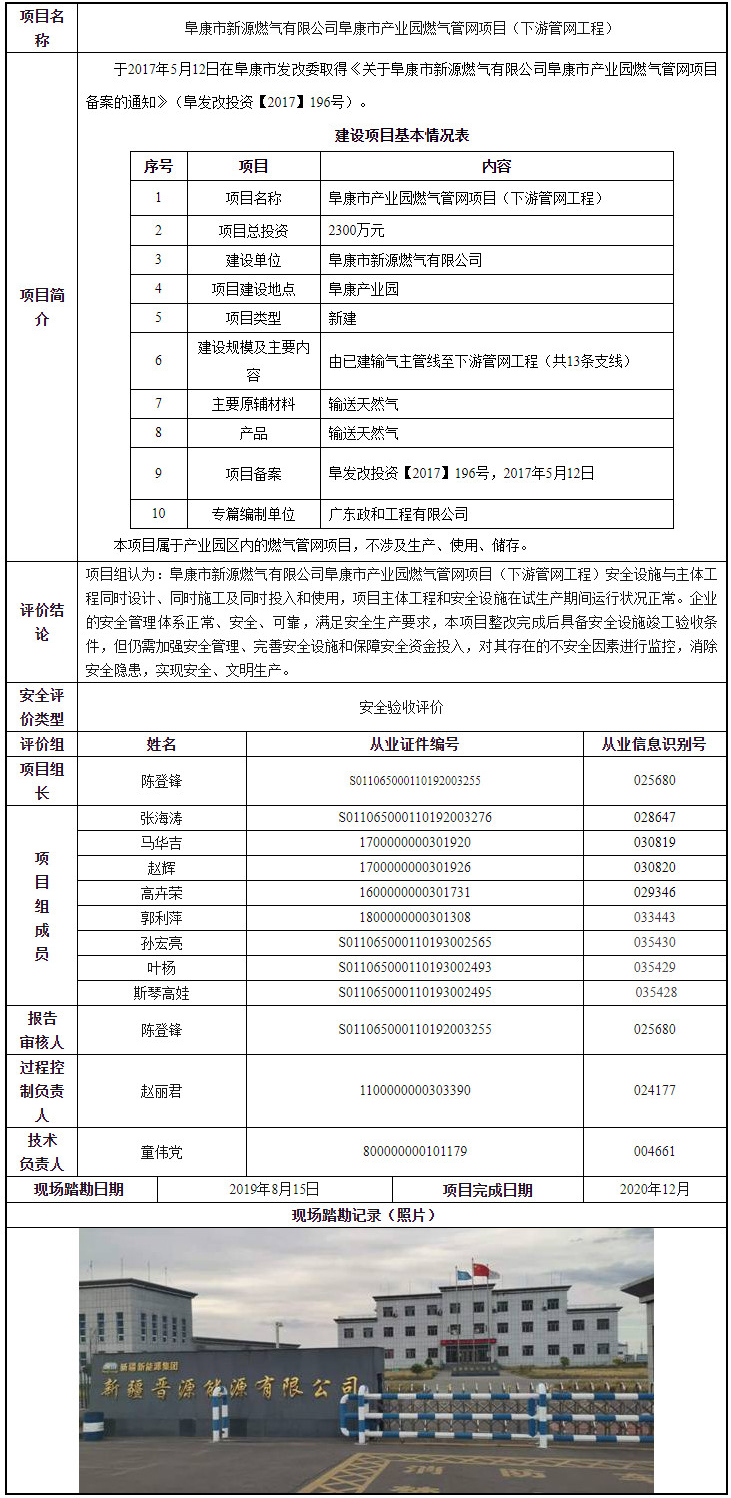 阜康市新源燃气有限公司阜康市产业园燃气管网扩建工程
