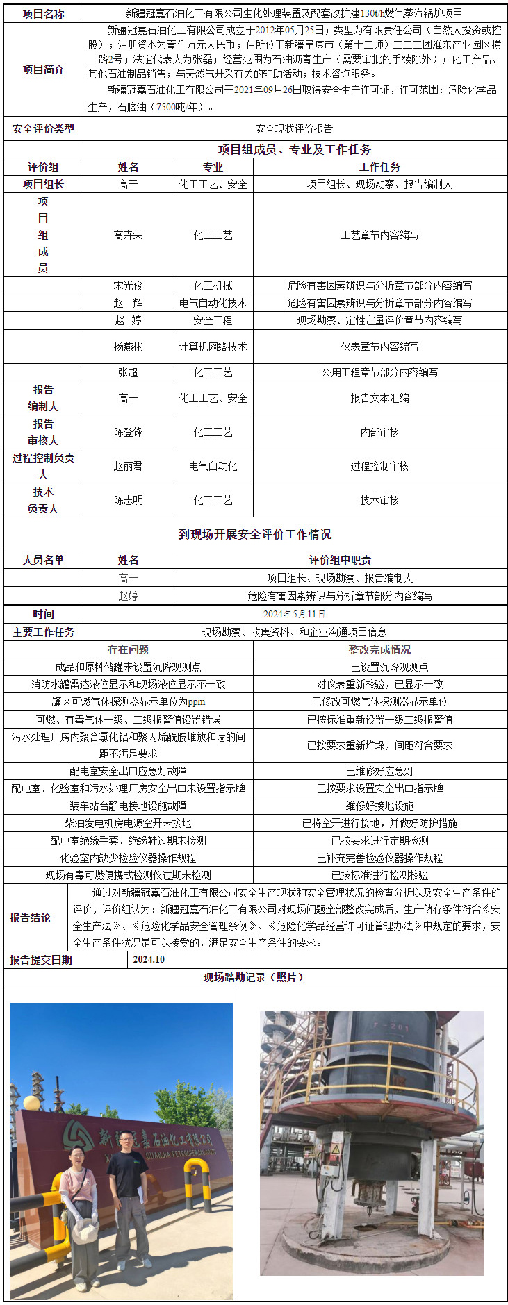 新疆法康尼石油化工有限公司20万吨/年改性沥青及配套储罐项目安全现状评价报告