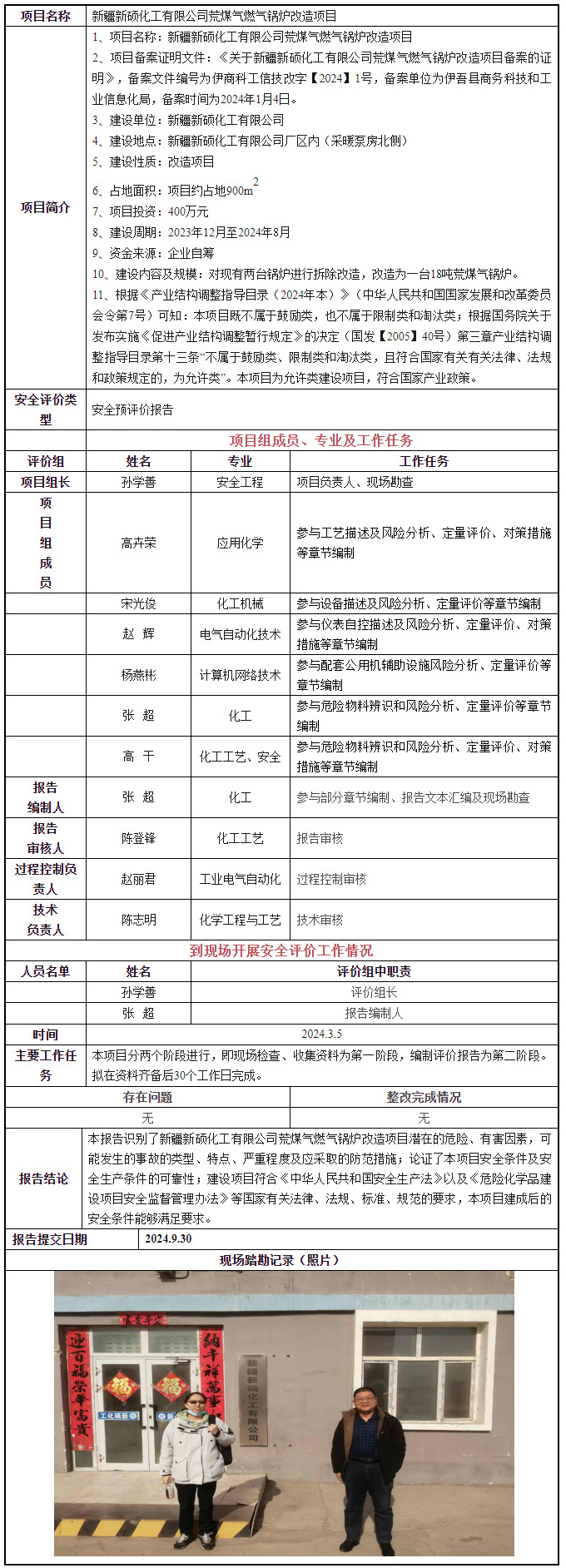 新疆新硕化工有限公司荒煤气燃气锅炉改造项目