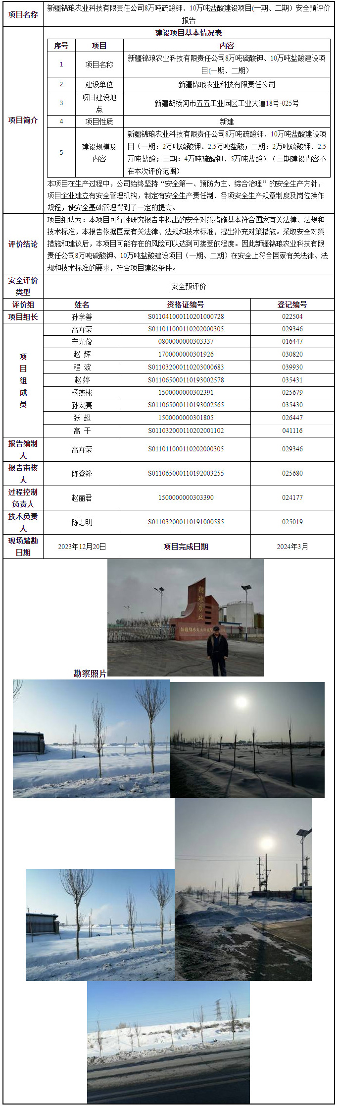疆锦琅农业科技有限责任公司8万吨硫酸钾、10万吨盐酸建设项目(一期、二期)安全预评价报告 2024-04-09 11:53:20