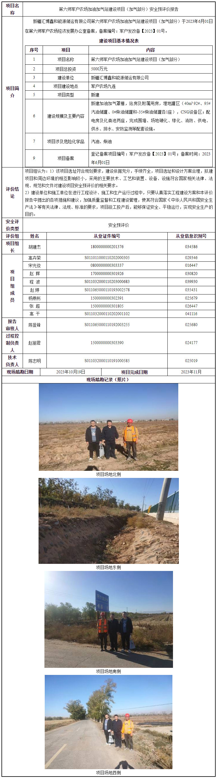 第六师军户农场加油加气站建设项目(加气部分)安全预评价报告