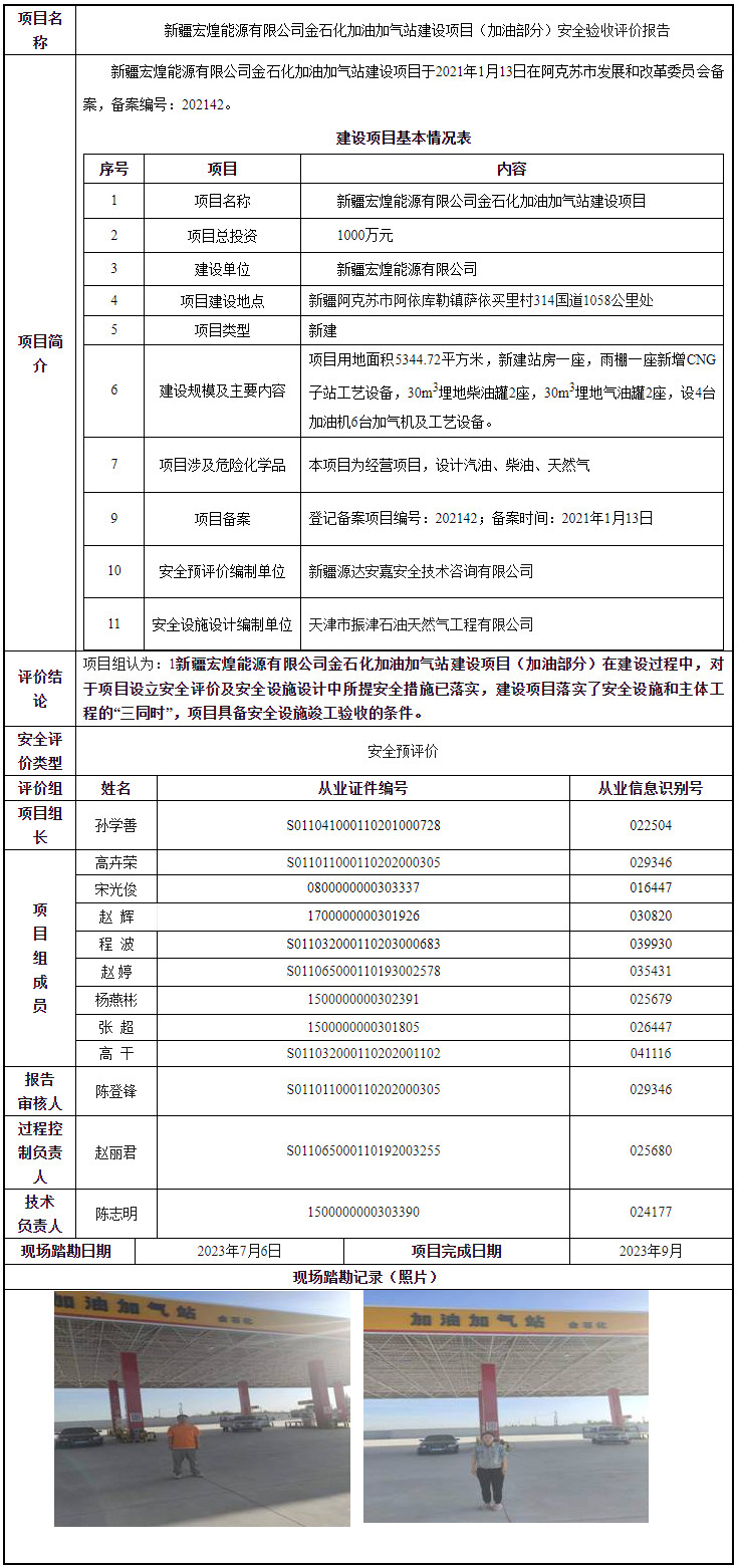 新疆宏煌能源有限公司金石化加油加气站建设项目(加油部分)安全验收评价报告