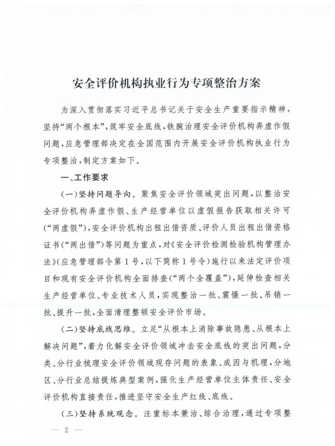 应急管理部办公厅关于印发《安全评价机构执业行为专项整治方案》的通知