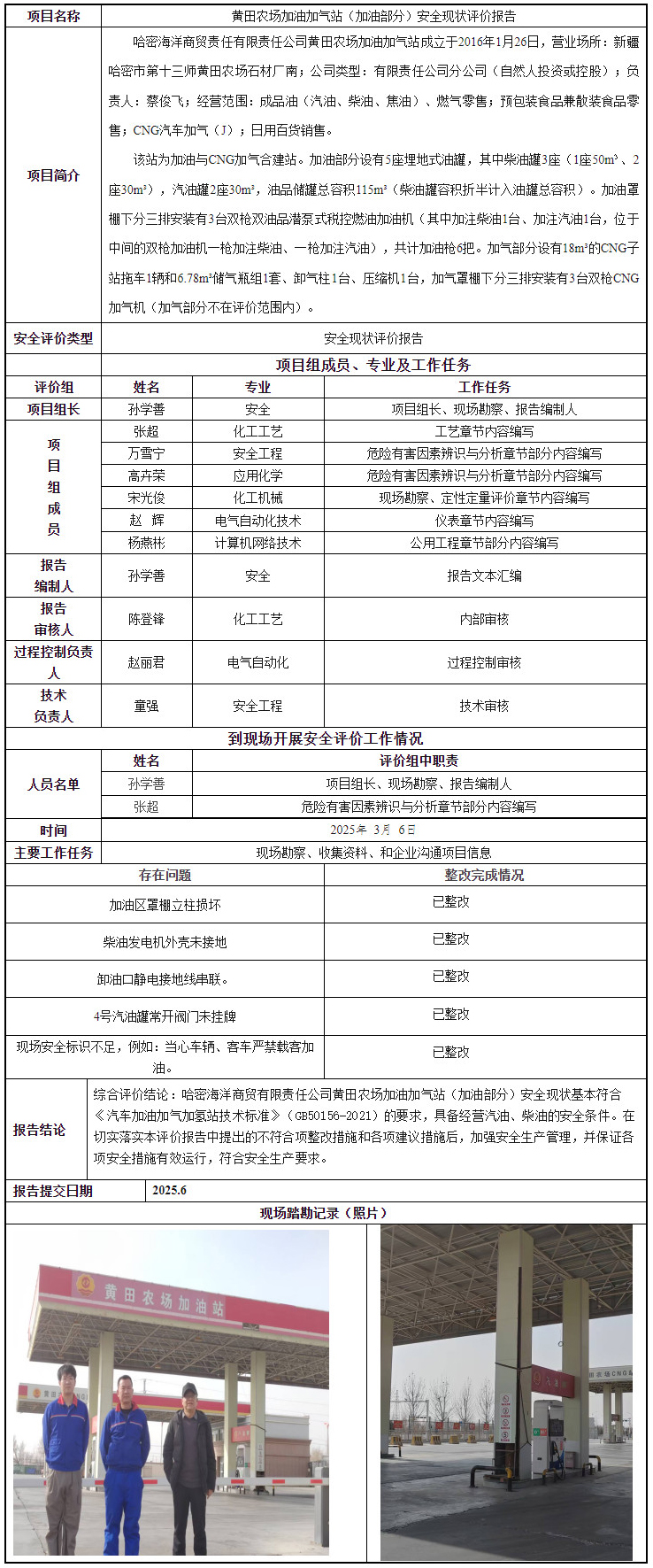 黄田农场加油加气站(加油部分)安全现状评价报告