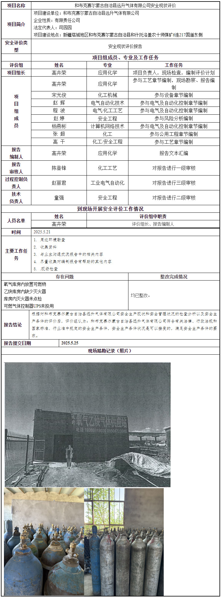 和布克赛尔蒙古自治县远升气体有限公司安全现状评价