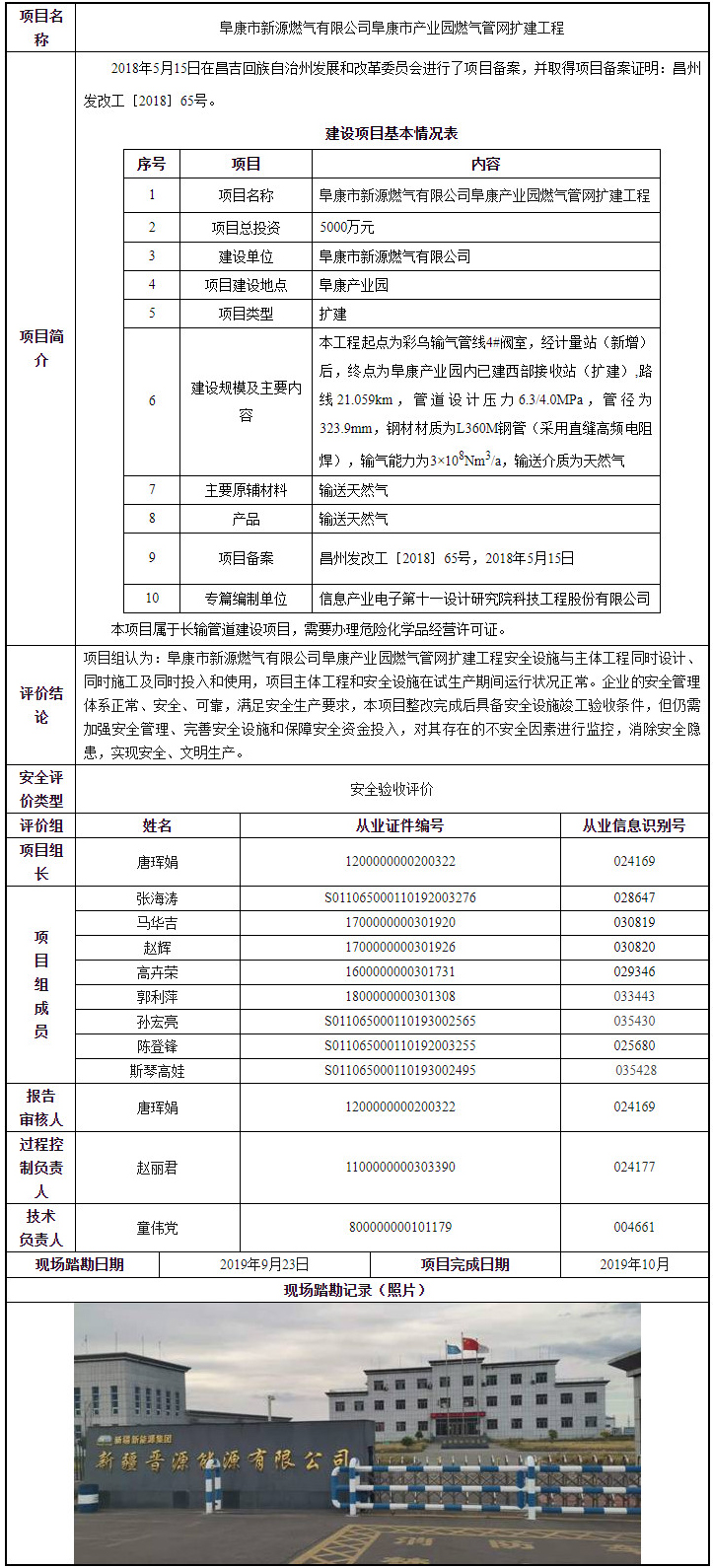 阜康市新源燃气有限公司阜康市产业园燃气管网扩建工程
