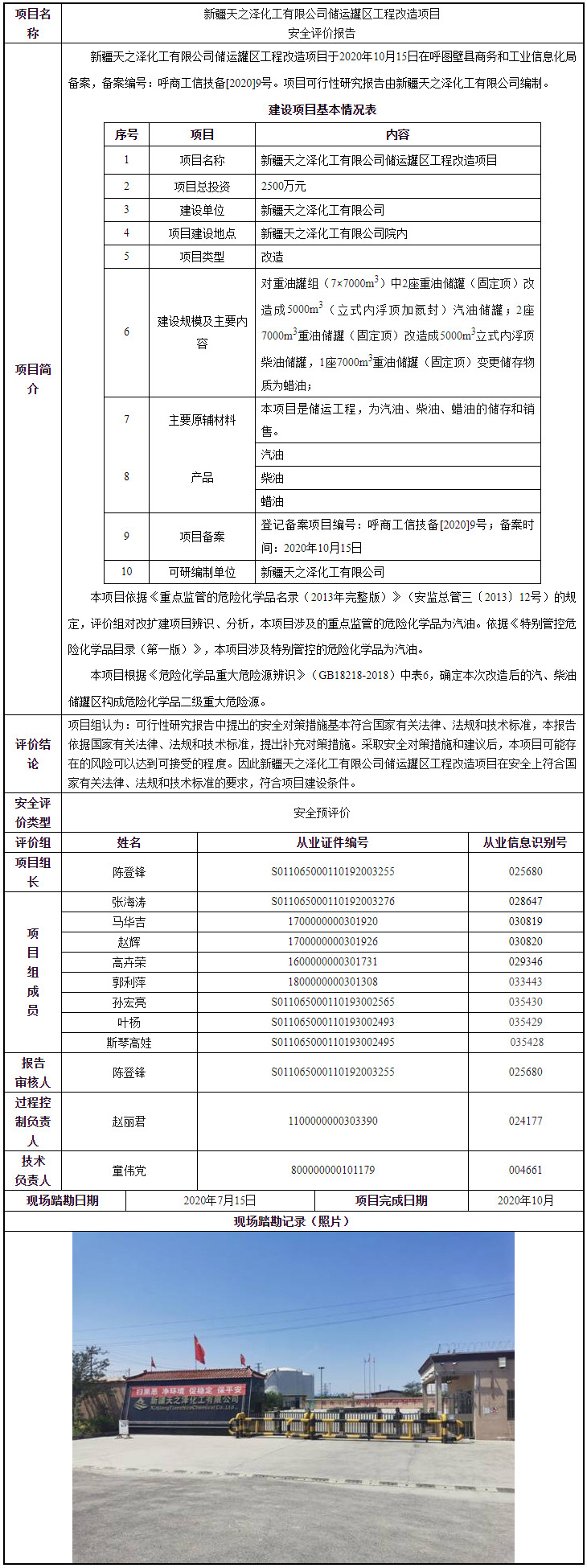 新疆天之泽化工有限公司储运罐区工程改造项目安全评价报告
