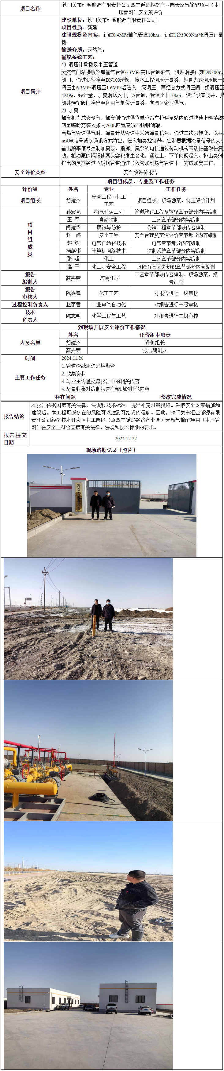 铁门关市汇金能源有限责任公司双丰循环经济产业园天然气输配项目(中压管网)安全预评价 2024-12-27 10:15:52