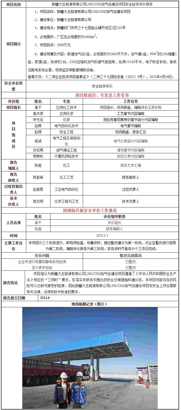 新疆大庄能源有限公司LNG/CNG加气站建设项目安全验收评价报告