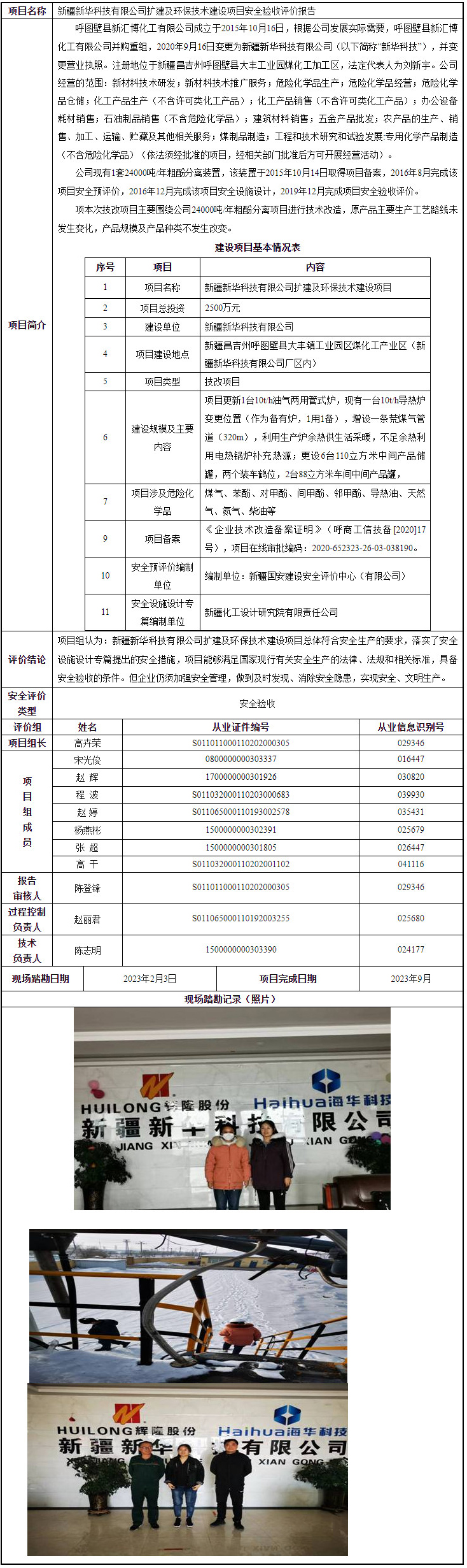 新疆新华科技有限公司扩建及环保技术建设项目安全验收评价报告
