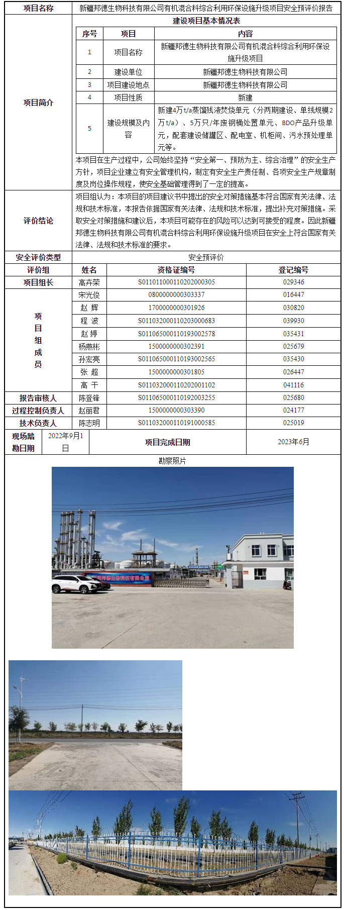 新疆邦德生物科技有限公司有机混合料综合利用环保设施升级项目安全预评价报告